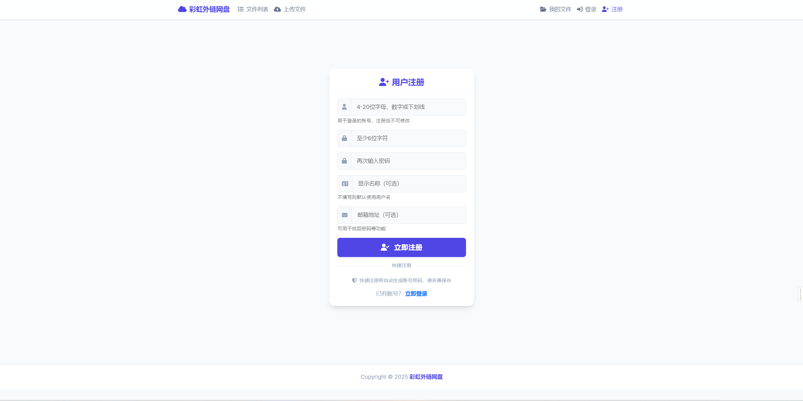 彩虹直链网盘–支持账号注册和登录