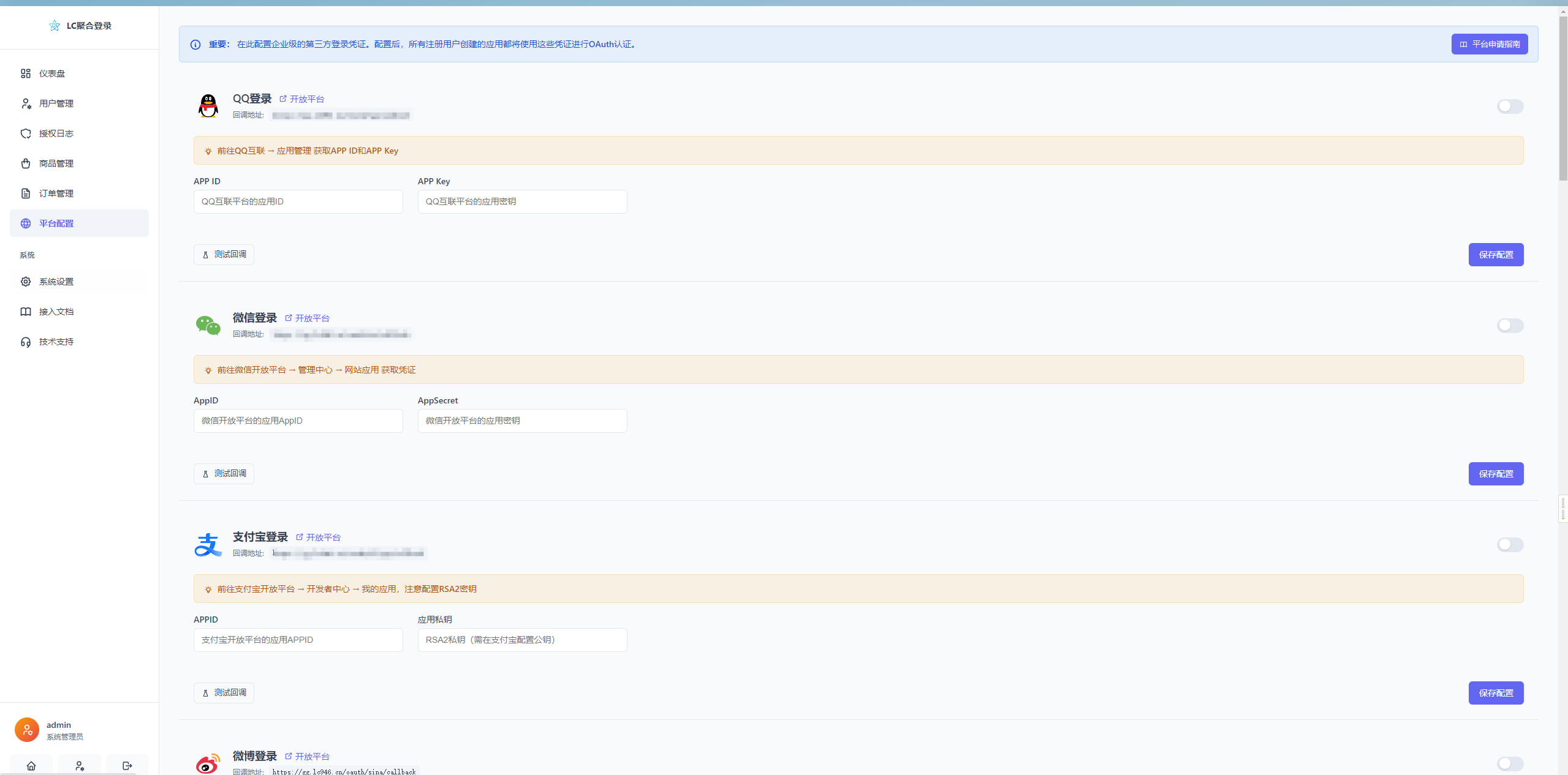 一套完全兼容彩虹聚合登录 API 的社交登录系统,支持多平台 OAuth 登录,可无缝替换彩虹聚合登录。
