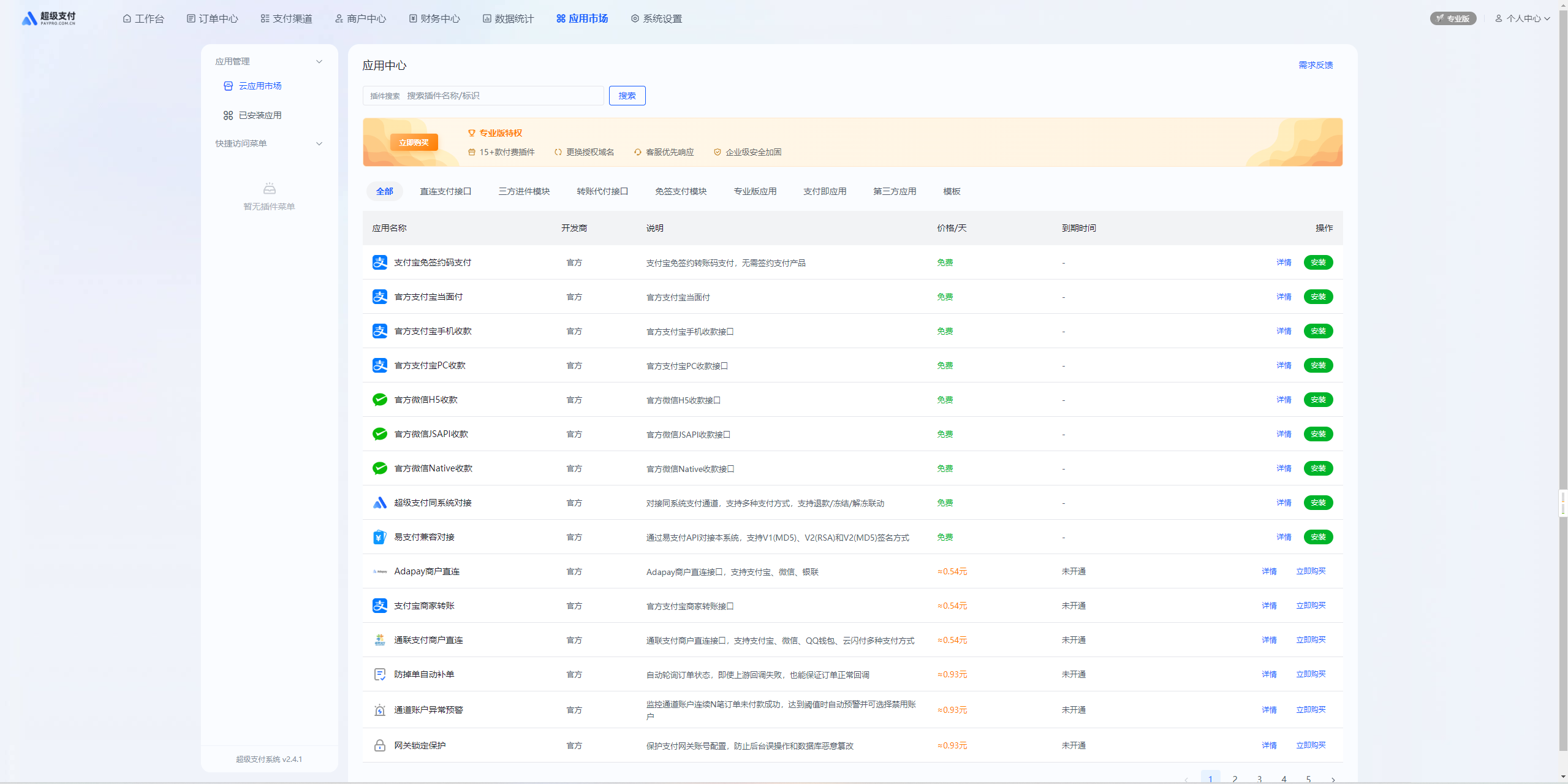 这个东西怎么说都是借鉴彩虹易支付的,ui挺好看,插件官方接口是免费的其他都是收费的,专业版收费还不低,我拿d盾扫了看是有后门的,其他自己自测吧